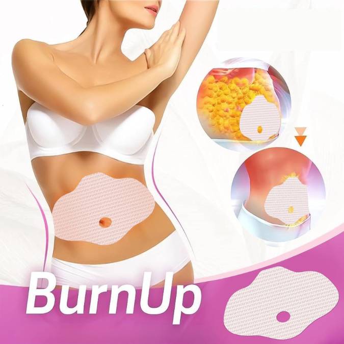 Os adesivos BurnUp têm uma ação direcionada na região abdominal, ajudando a reduzir a gordura localizada e o inchaço.