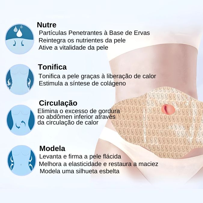 Estão embebidos com substâncias naturais como Garcinia e Centella Asiatica, que ajudam na redução do tecido adiposo e promovem a eliminação de toxinas.